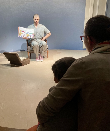 Un acteur ou une actrice anglophone est invité(e) à lire à voix haute des histoires en anglais sélectionnées parmi les œuvres disponibles dans la bibliothèque de la compagnie. Les membres du public, quelle que soit leur maîtrise de la langue anglaise, peuvent profiter de la musique des mots aidés par les illustrations et le jeu des comédiens dans la plus grande tradition de l’art narratif.